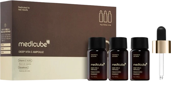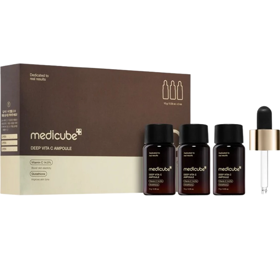 Medicube Deep Vita C Ampoule 2.0 — ein hochwirksames Aufhellungsserum mit 14,5 % wasserlöslichem Vitamin C, entwickelt zur Bekämpfung von Pigmentflecken, fahlem Teint und ungleichmäßigem Hautton.